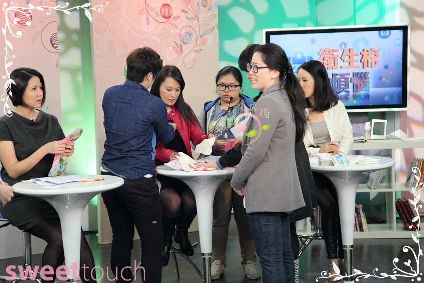 進入化妝室化好妝之後,現場來賓都很驚訝有布衛生棉的產品,大家正在努力的看布衛生棉呢,經過錄影之後我想,布衛生棉果然是女孩們的好話題。