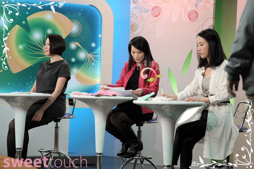 最左邊的就是店長本尊,為了錄影小小的打伴一下,可惜當天我的身體不太舒,腸胃炎發作了,整日沒吃什麼東西,只能喝流質食物,當天上節目帶了我們的有機棉布護墊、分離型布衛生棉、夜用布衛生棉36cm。